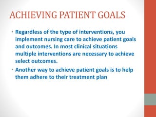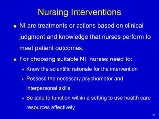 Made in concert with the plan of care initiated by the physician. In this context nursing intervention is important to know how the nutrition problem can be treated or reduced. Safety nursing interventions include actions that maintain a patients safety and prevent injuries.